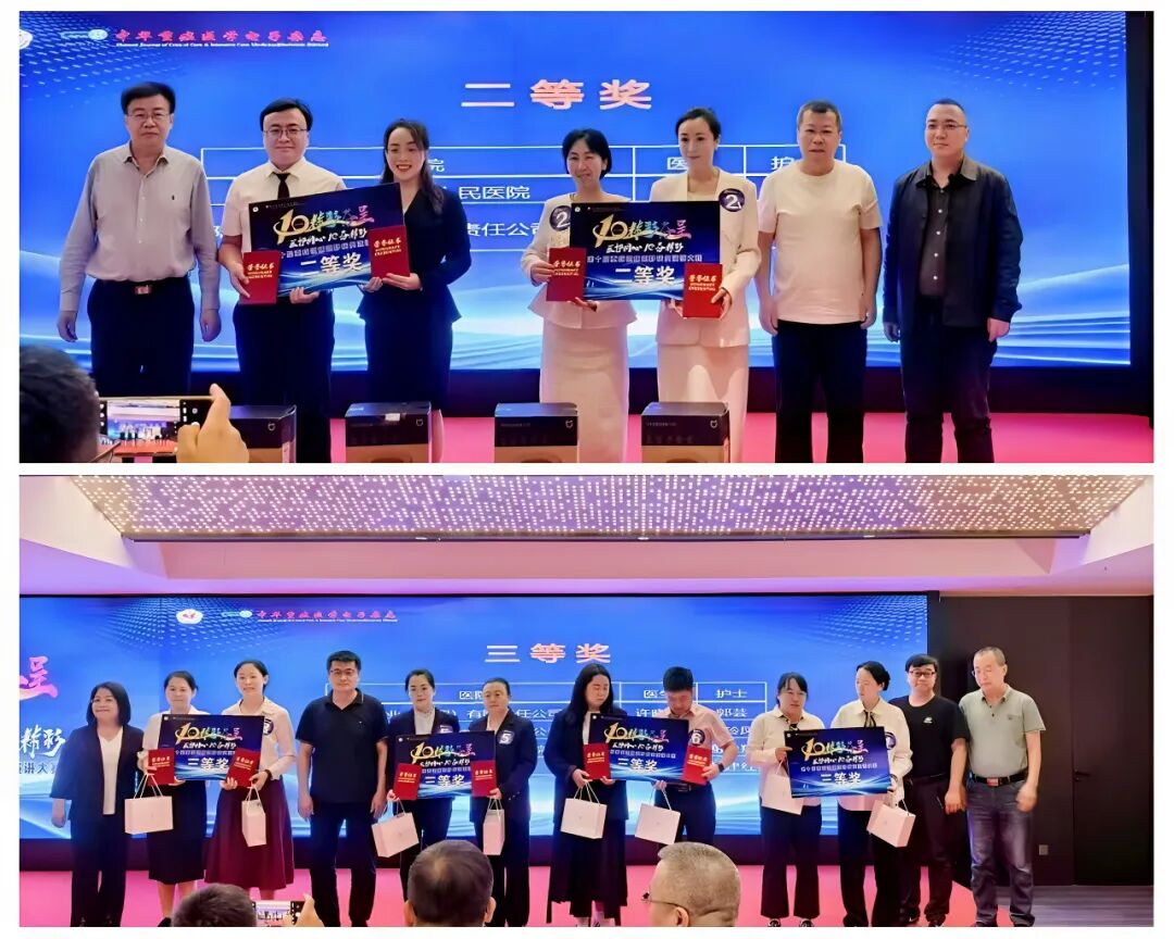 比赛现场,重症医学科李文峰医生与李宛芝护士以《心跳“重启”镇痛镇静“力挽狂澜”》为题,深度剖析了一例急性心梗患者的救治全过程。他们从详实的病例背景切入,结合丰富的诊疗数据,系统阐述了镇痛镇静评估的个体化策略,重点阐述了镇痛镇静与器官功能保护的平衡技巧,以及重症医学科在危重症镇痛镇静管理领域的前沿理念与实践经验。呼吸与危重症医学科许晓红医生、郭芸护士带来的《无痛守护 重获新生》作品,以及神经外科隽文琦医生、韩玲凤护士的《静护脑伤 稳筑生机》作品,同样亮点频出。这些案例不仅体现了临床团队精湛的诊疗技术,更完美诠释了“精准医疗、舒适照护”的现代重症医学核心理念,赢得了现场评委专家的一致好评。