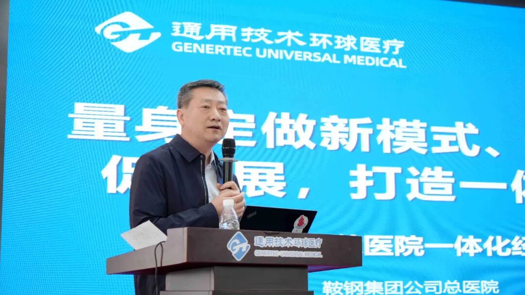 阳煤总医院党委副书记、院长王汝江以“厚德载物承医脉 协同共进启新程”为题,汇报了医院一体化整体推进情况及下一步的作战地图。
