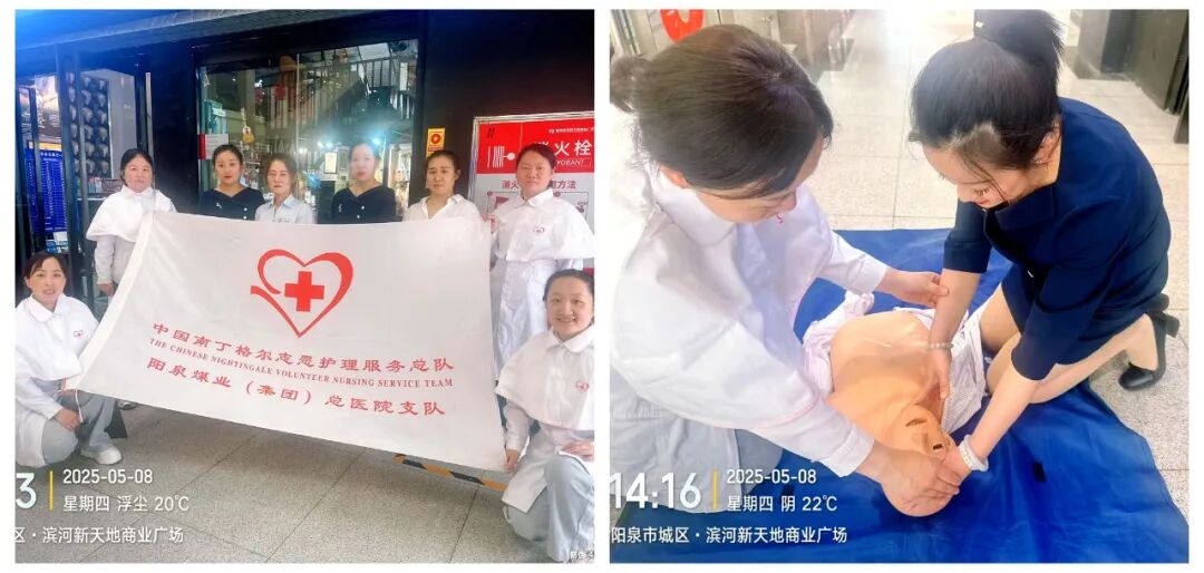 5月8日,阳煤总医院志愿者为滨河新天地商业广场老凤祥店员工们带来了一场生动实用的急救技能培训。