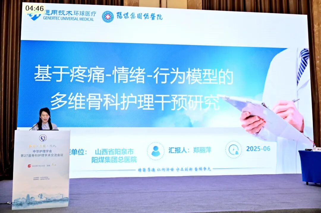 阳煤总医院骨科护理团队在本次大会上进行了多项高质量的学术交流:郑丽萍、白小花等完成的《多维护理干预对骨科患者心理健康及治疗依从性的影响:基于疼痛-情绪-行为模型的随机对照研究》进行了大会发言,该研究成果创新性地构建了“疼痛-情绪-行为”模型,系统阐述了多维护理干预策略对改善骨科患者心理状态、提升治疗配合度的显著效果。另外两篇投稿进行了壁报交流展示,韩翠红完成的《护理巡视卡在老年骨科患者病情观察中的应用效果研究》,聚焦老年骨科患者这一特殊群体,探索了标准化巡视工具在提升病情观察及时性、准确性方面的实践价值,为优化老年骨科护理流程提供了实证依据。崔丽娟、高丽等完成的《全膝关节置换术后患者恐动症的发生现状及影响因素研究》,深入分析了术后恐动症的发生率及相关影响因素,强调了心理干预和科学康复指导在促进患者功能恢复中的关键作用。
