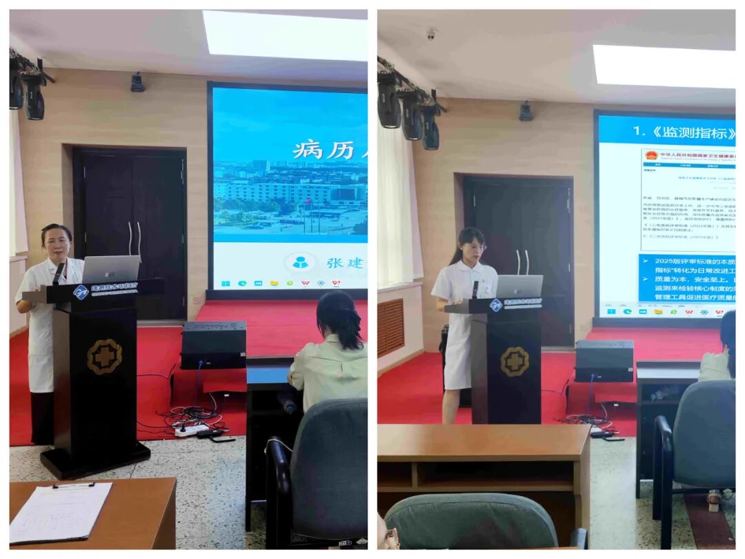 本次培训聚焦当前医疗质量管理的关键环节与政策要求,内容翔实,针对性强。张建青老师主讲的《病历质量培训——评估与知情告知》,聚焦病历质量与风险防范。深入剖析了病历评估与知情告知环节中常见的书写缺陷、潜在法律风险点及沟通误区,重点讲解了如何通过规范化的书写和有效的医患沟通,规避医疗纠纷,保障医患双方权益。孟平老师主讲的《医疗质量安全核心制度落实监测指标解读》,对医疗质量安全核心制度相关的监测指标进行了系统、清晰的解读,指导各科室如何有效落实核心制度,并通过监测指标持续改进医疗质量,保障患者安全。