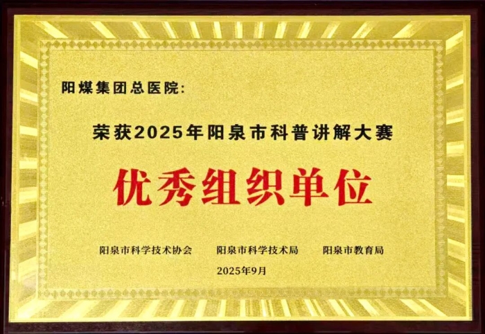 作为全国科普月的主场活动,“探索科学奥秘 传播科普新声”阳泉市科普讲解大赛自7月份启动以来,吸引了来自全市各领域、各年龄段的科普爱好者踊跃参与。在初赛阶段,阳煤总医院积极推荐优秀科普作品参赛,并最终获此殊荣。