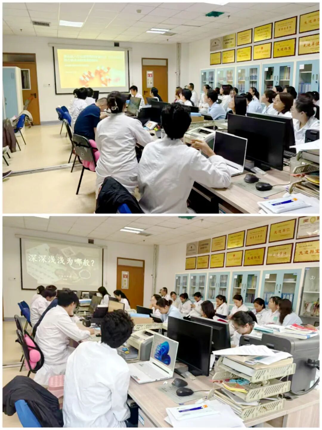 一直以来,药学部持续以“患者用药安全”为核心,开展了实操案例学习。在药师节来临前夕,9月24日下午,科室组织的业务学习精准聚焦两大关键维度。活动中,尚珺药师深入解读了《雾化吸入疗法合理用药专家共识》,从临床应用规范到实操细节,为药师们梳理专业要点,助力提升服务精准度;秦宇霞药师以“深深浅浅为哪般”为题,从患者日常关注的中药煎煮颜色差异切入,深入浅出剖析了背后的科学原理,为药师开展合理用药提供了参考。两场学习相辅相成,全面增强了药师团队的安全用药指导能力。