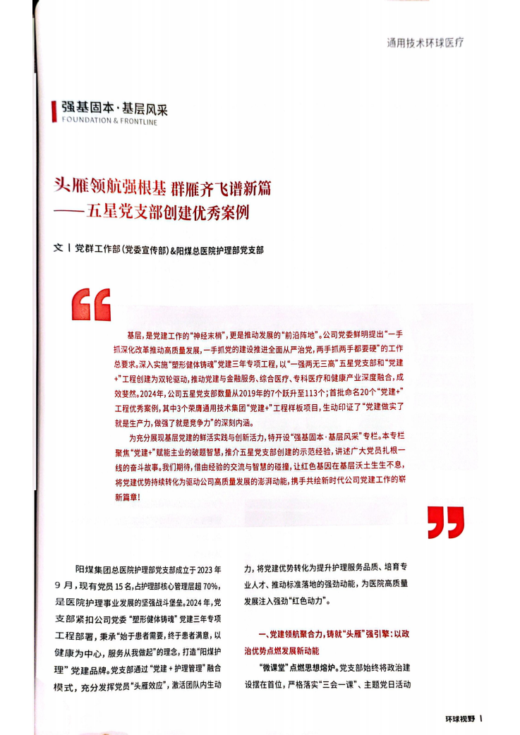 头雁领航强根基 群雁齐飞谱新篇——阳煤总医院护理部党支部五星党支部创建优秀案例