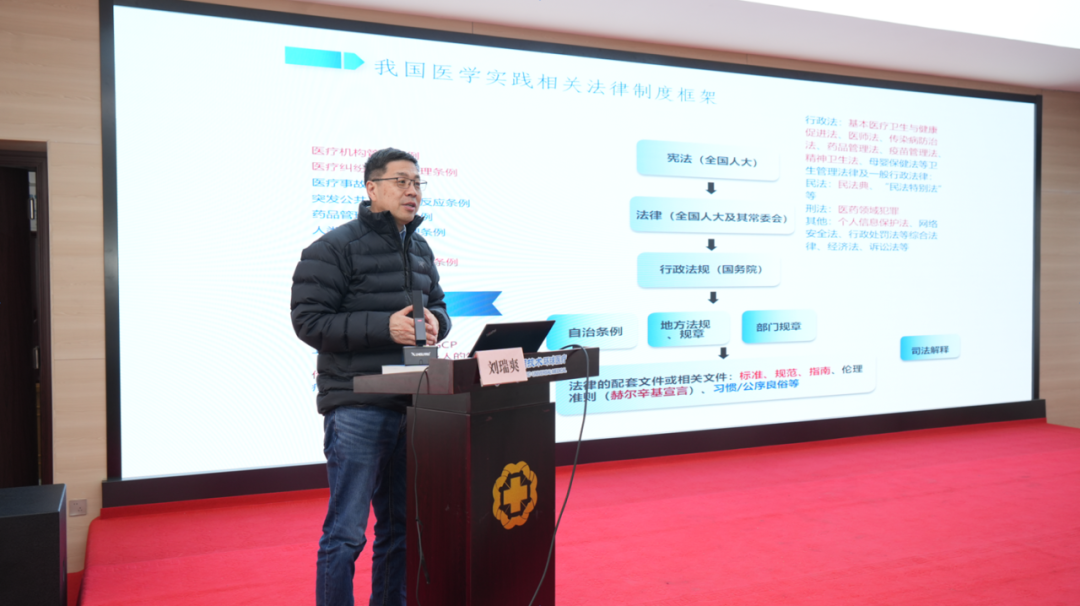 本次培训特邀北京大学医学人文学院医学伦理与法律学系副主任、卫生法学副教授、北京大学法学院法律硕士研究生导师刘瑞爽教授莅临授课。课程包含医疗纠纷及患者隐私保护、药品管理及临床试验伦理等,重点就医务人员的执业行为以及医疗机构的合规运营等内容进行了说明。