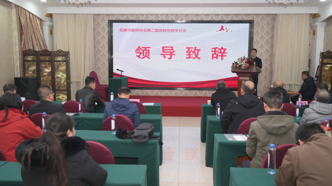 王汝江院长致开幕词,对阳煤总医院皮肤科在医疗技术、服务质量、管理水平以及学科建设等方面取得的成绩给予肯定,并对未来的发展提出要求。