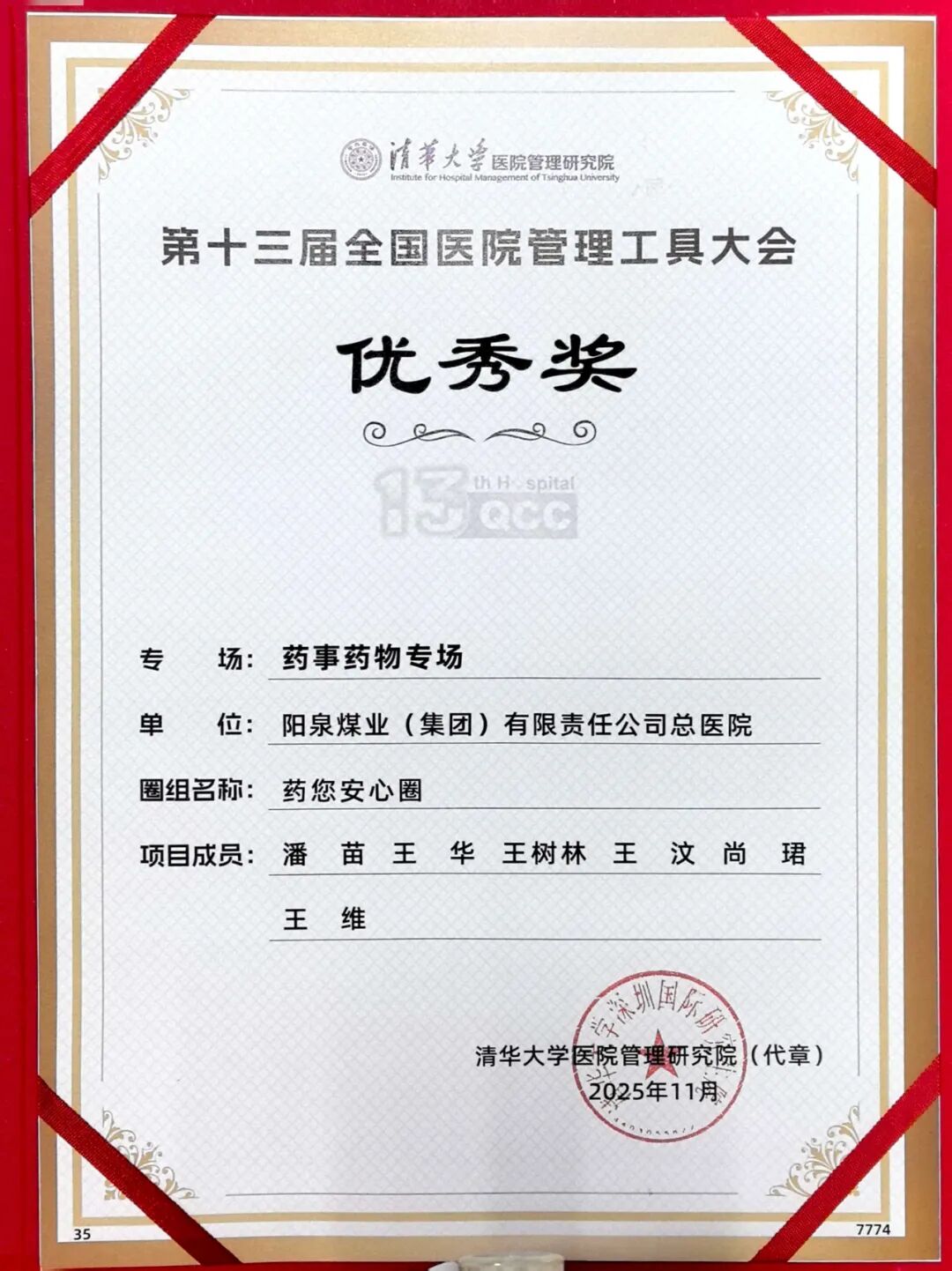 10月30日至11月2日,由国家卫生健康委员会医疗管理服务指导中心和浙江省卫生健康委员会指导,清华大学医院管理研究院主办,浙江省医院协会承办的第十三届全国医院管理工具大会在浙江湖州隆重举行。阳煤总医院药学部尚珺、王汶代表团队参赛,捧回药事药物专场优秀奖。