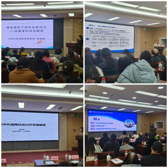 在专题授课环节,由阳泉市第一人民医院药学部主任王晖和平定县医院副院长苗庆林主持。山西白求恩医院药学部李瑞娟博士通过“指南指导下的抗血栓药物治疗经典案例深度解析”,以实际案例增强教学的实用性与启发性;阳煤总医院药学部副主任潘苗对“2025版国家药事管理专业医疗质量控制内容”进行了细致解读,帮助各医院准确把握各级医疗机构药事质控工作的核心要点与评价标准;阳泉市第一人民医院心血管科主任高晓峰对“CCS中外指南抗栓治疗管理”进行深入解读,并结合国内外最新进展,提升了与会者对血栓防治的规范认知;阳煤总医院药品科科长冯娟围绕“药品遴选综合评价”展开讲解,为医疗机构科学遴选药品提供了方法和指导。在讨论交流环节,来自全市各级各类医疗机构的药学老师们,围绕“基层医院如何做好药事质控工作”“医院如何围绕指南结合临床遴选药品”以及“如何依据医保政策提升合理用药水平”三大议题,结合各自的实际情况与探索经验,展开了坦诚而深入的交流。讨论现场气氛热烈,观点碰撞频繁,既有对共性难题的剖析,也有对特色做法的分享,为破解当前药事管理工作中的难点、堵点问题提供了多元化的思路与参考。