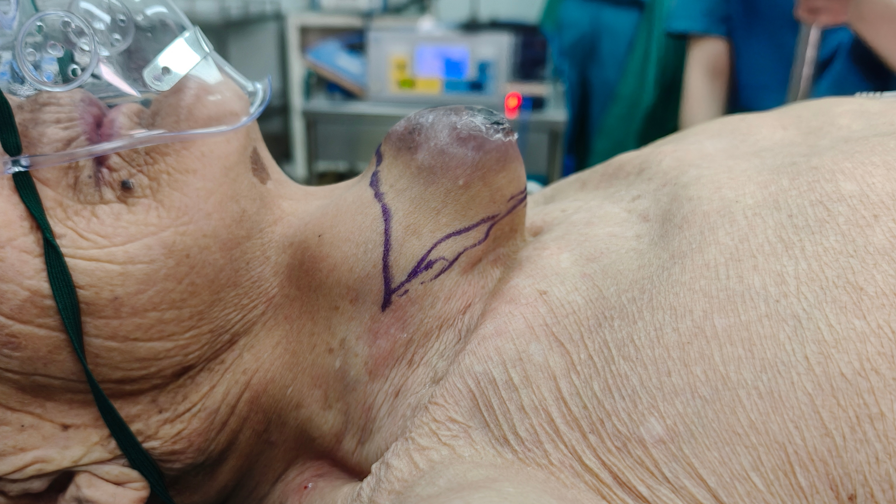 面对挑战,乳甲外科迅速组织多学科会诊,与麻醉科、呼吸科共同制定了个性化手术及麻醉方案。术中采用局部浸润麻醉,麻醉团队全程监测,动态调整用药,确保患者安全。手术团队精细操作,精准切除肿物,并严格控制手术时间与创伤。术后病理显示,其中一例为甲状腺恶性肿瘤。