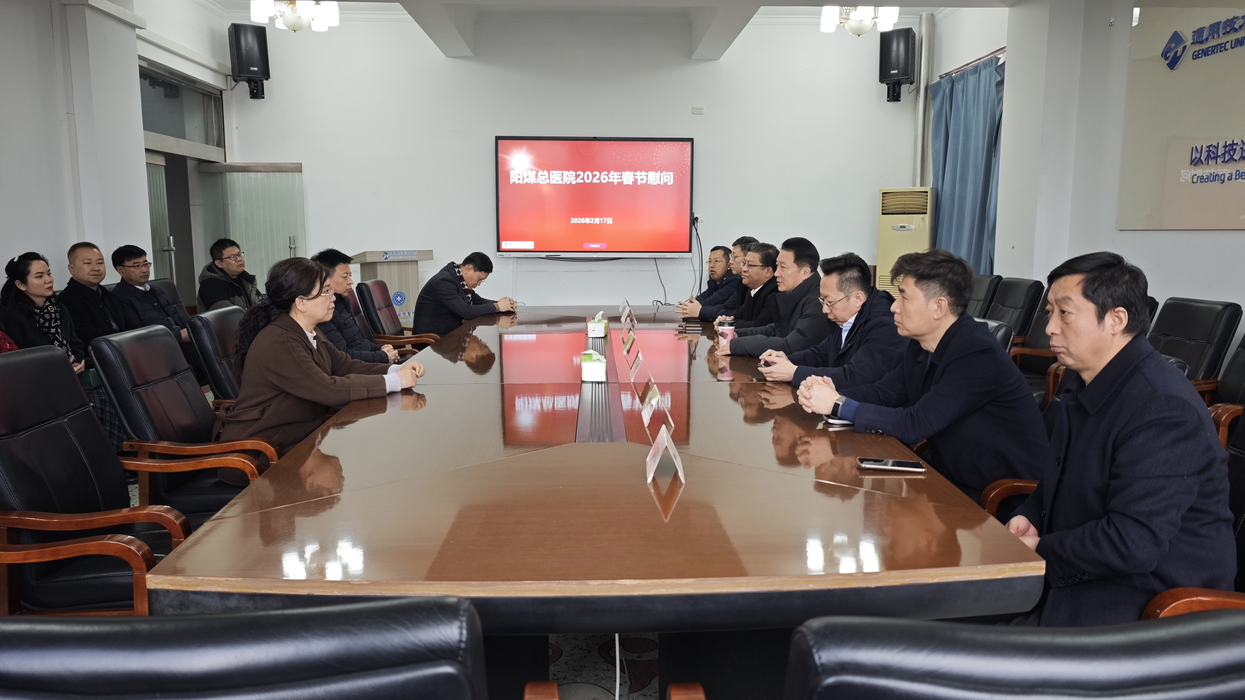 在2026年春节即将到来之际,2月11日,公司党委副书记、阳煤总医院党委书记王琳同华阳集团董事、总经理助理、工会主席张旭升,董事会秘书周亮进行交流座谈。