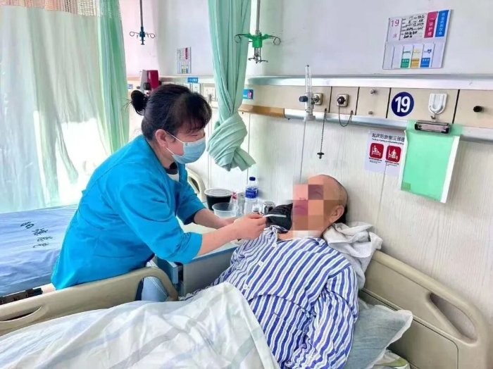 在这间病房里,护士和专业医疗护理员日夜守护,让高龄患者在病痛中被看见、被理解、被温暖、被鼓舞。刘老伯儿子来接老人出院时,竖起大拇指连连夸赞:“医院的免陪照护比家人更周到、更专业,真是太好啦!”
