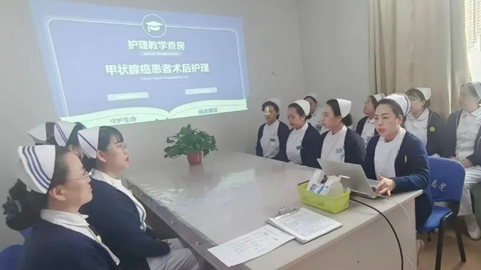 为推动护理教学与临床实践深度融合,规范护理实践教学流程,持续提升护理教学质量,3月6日,由阳煤总医院护理部组织的教学查房观摩活动在乳腺甲状腺外科(以下简称“乳甲外科”)示教室开展。