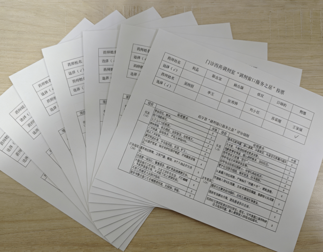 本次评比活动,是在2024年评选的基础上,结合医院高质量发展新要求,深化推出了新的评选机制,涵盖了仪表、行为规范、礼仪、业务素质四大方面。评比内容不仅包括药师的着装精神面貌、劳动纪律、服务态度、操作规程及应急处置能力,还特别增加了对患者用药教育、耐心解答等方面的考核权重,确保每一位药师都能以最专业的素养、最温暖的态度服务患者。同时增加了由科室负责人带着评选表到门诊科室、职能科室进行评选调研,并按照公平、公正、公开的原则,对门诊西药调剂室全体药师进行了综合考评。通过药学部科室内部评分、科室外部评分并结合患者满意度反馈,最终评选出王家琛药师为药学部调剂窗口2025年“药学服务之星”。