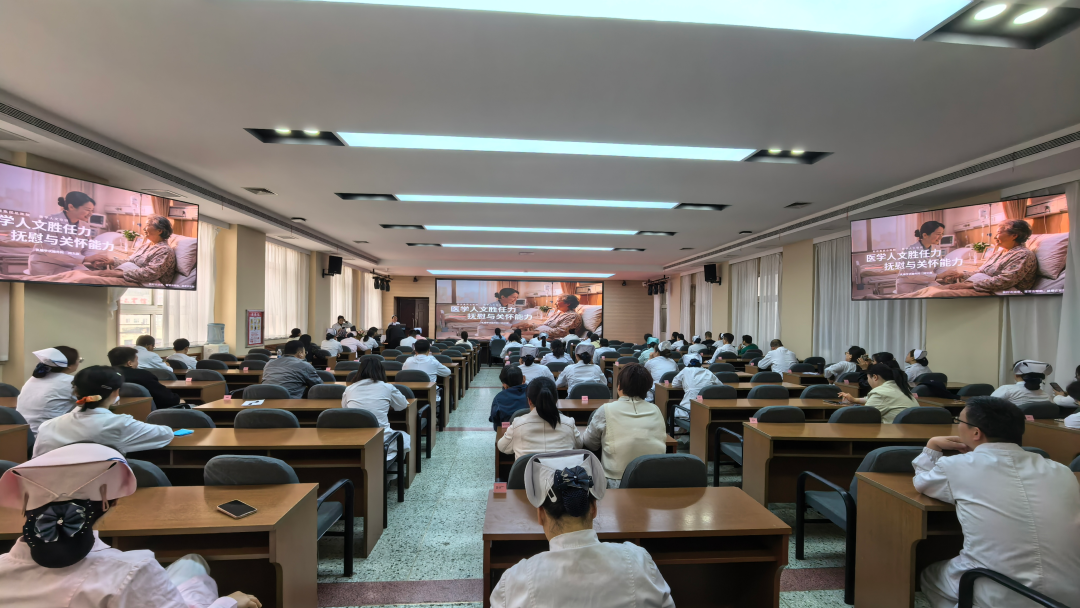 在医学人文专题中,医院内训师、乳甲外科护士长闫文霞以“医学人文胜任力之抚慰与关怀能力”为主题,结合临床案例,系统讲授了CICARE标准化沟通模型、情绪标注法、沉默的力量三项人文服务工具,引导医务人员以真诚陪伴、精准共情、尊重倾听,为患者提供有温度的医疗照护。
