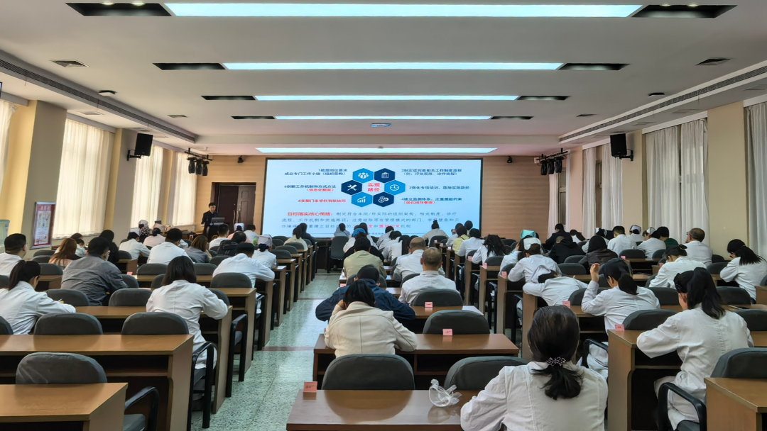 会上,院长助理、医务科科长董建军系统解读了《2026版国家医疗质量安全改进目标》,围绕十大核心目标及45个专业60项专科质控重点指标,重点对脑血管病急性期规范诊疗、肿瘤治疗前临床分期评估、静脉血栓栓塞症(VTE)规范预防、感染性休克集束化治疗、四级手术术前多学科讨论、检查检验结果互认等关键任务进行逐项拆解,明确临床执行标准、数据监测要点、医保合规要求及闭环管理路径,为医院精准落实国家质控要求、推进高质量发展提供清晰指引。
