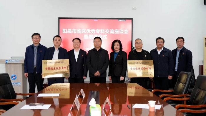 4月9日,阳煤总医院举办阳泉市临床优势专科交流座谈会暨授牌仪式。阳泉市卫健委党组书记、主任晋玮,通用技术环球医疗董事、党委副书记、阳煤总医院党委书记王琳,阳煤总医院院长、党委副书记王汝江,副院长郭瑞斌、庞跃锋、王振钧,以及市卫健委和阳煤总医院相关科室负责人出席会议。