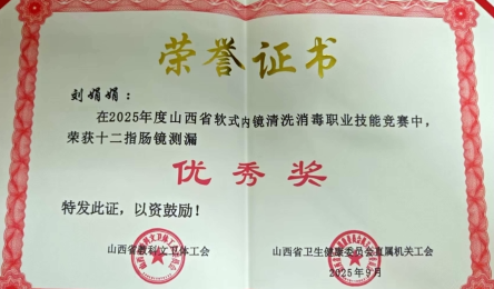 日前,由山西省科教文卫体工会与山西省卫生健康委员会直属机关工会联合举办的2025年度山西省软式内镜清洗消毒职业技能竞赛获奖名单公布,我院内镜室刘娟娟凭借精湛技艺与稳定发挥,在强手如林的...